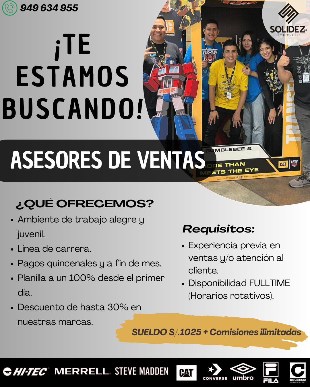 - Sueldo Básico S/1130.00 + COMISIONES